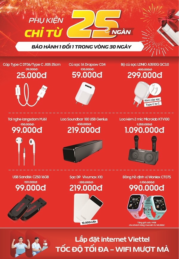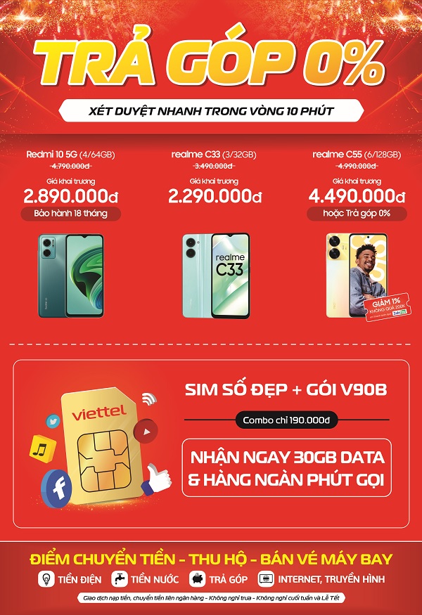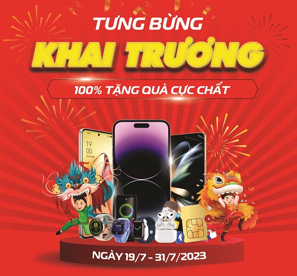 Từ ngày 19/07 đến 31/07/2023 khách hàng mua hàng tại siêu thị mới khai trương của Viettel Store tại địa chỉ: Số 223/6 Quốc Lộ 55( Vòng Xoay Bà Tô), thị trấn Phước Bửu, huyện Xuyên Mộc, tỉnh Bà Rịa, VũngTàu sẽ được nhận nhiều ưu đãi hấp dẫn như mua smartphone chính hãng giảm đến 9 triệu đống, phụ kiện giá chỉ từ 25.000đ, SIM số đẹp giảm đến 50%.
