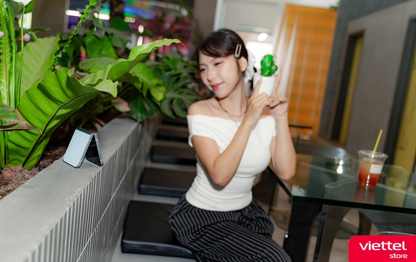 Hãy tưởng tượng bạn đang đi du lịch và ghé thăm một quán cafe xinh xắn. Bạn muốn ghi lại khoảnh khắc này nhưng không có tripod hay giá đỡ bên cạnh và bạn cũng không thể nhờ một ai khác chụp hộ. Đừng lo lắng, Galaxy Z Flip6 đã sẵn sàng để giúp bạn. Với tính năng FlexCam, bạn có thể dễ dàng điều chỉnh góc quay, từ đó tạo ra những video tuyệt đẹp mà không cần sự hỗ trợ từ bất kỳ thiết bị ngoại vi nào.