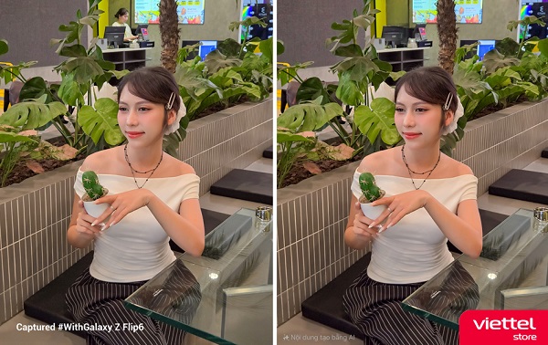 Và cũng trong quán cafe ấy những tấm ảnh của bạn thật đẹp và lung linh. Nhưng đằng sau bạn là những chiếc ghế chưa được sắp xếp gọn gàng hay một cá nhân nào đó vô tình xuất hiện trong khung hình khiến tấm ảnh chưa được trọn vẹn. Với tính năng Photo Assist, Galaxy Z Flip6 sẽ giúp bạn loại bỏ những chi tiết này, tạo ra bức ảnh hoàn hảo chỉ với vài thao tác đơn giản.