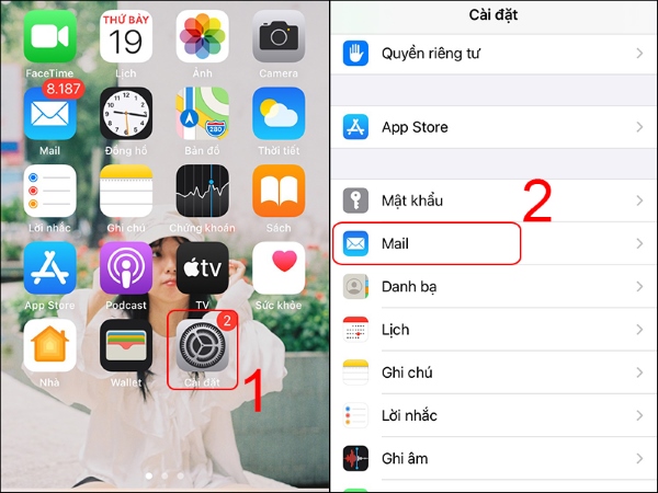 Bước 1: Mở phần Cài đặt (Settings) trên iPhone > chọn vào Mail.