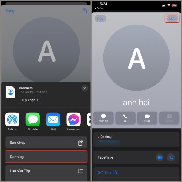Bước 4: Chọn vào Danh bạ > chọn Lưu để thêm tài khoản Google vào iPhone.