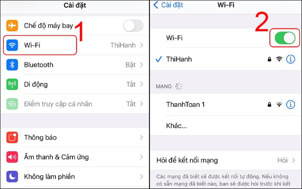 Bước 1: Mở Cài đặt > chọn vào Wi-Fi > tắt kết nối rồi bật lại.