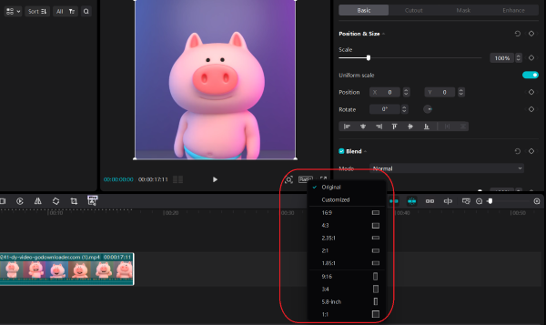 Bước 5: Nhấn vào ô “Ratio” để thay đổi kích thước video.
