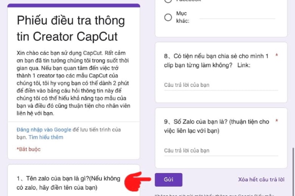 Khi người dùng đã điền hết các câu hỏi, bạn chỉ cần nhấp vào nút Gửi để hoàn tất.