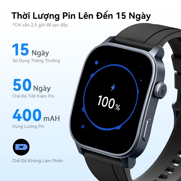 Với viên pin dung lượng lên đến 400mAh, đồng hồ thông minh Kieslect KS3 có thể hoạt động lên tới 2 tuần sử dụng liên tục, giúp người dùng yên tâm trong suốt hành trình năng động của mình. Bên cạnh đó, tính năng ghi âm cuộc họp và nhạc cũng mang đến nhiều tiện ích cho người dùng.