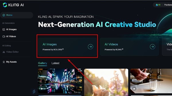 Bước 1: Trên giao diện chính của Kling AI, chọn AI Images.