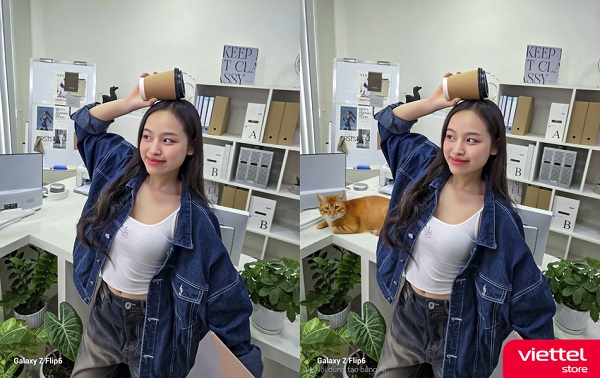 Camera cũng là điểm mạnh của Galaxy Z Flip6. Với camera chính 50MP và camera góc rộng 12MP, Z Flip6 cho khả năng chụp ảnh sắc nét và chi tiết hơn bao giờ hết. Cùng với những cải tiến về chế độ chụp đêm và AI hỗ trợ chỉnh sửa ảnh, Z Flip6 mang lại cho người dùng những bức ảnh tuyệt vời trong mọi điều kiện ánh sáng.