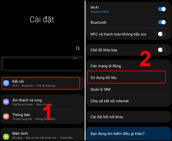 Bước 1: Bạn truy cập Cài đặt > chọn Kết nối > chọn Sử dụng dữ liệu.
