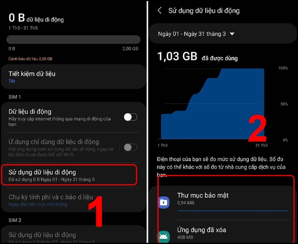 Bước 2: Nhấn vào Sử dụng dữ liệu di động > chọn ứng dụng muốn dừng làm mới dữ liệu nền.