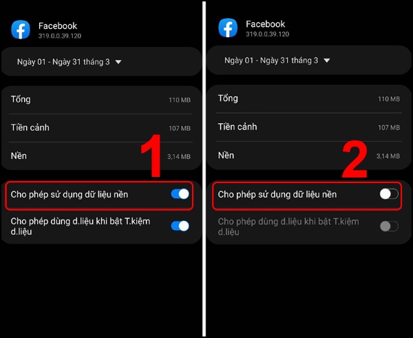 Bước 3: Nhấn vào ứng dụng đó > gạt công tắc sang trái tắt tính năng Cho phép sử dụng dữ liệu nền.