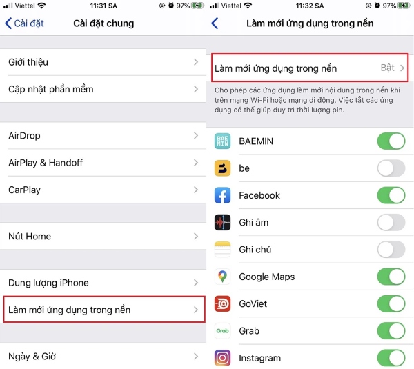 Để bật tính năng làm mới ứng dụng trong nền trên điện thoại iPhone, bạn thực hiện theo các bước sau: