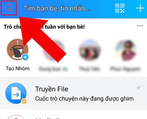 Truy cập vào giao diện ứng dụng Zalo trên điện thoại, bạn hãy nhìn lên thanh tìm kiếm ở vị trí trên cùng > Tại đây sẽ có biểu tượng chiếc kính lúp ở bên trái > Nếu tài khoản đang ẩn bất kỳ cuộc trò chuyện nào và người này đang nhắn tin tới > Biểu tượng sẽ hiển thị màu đỏ.