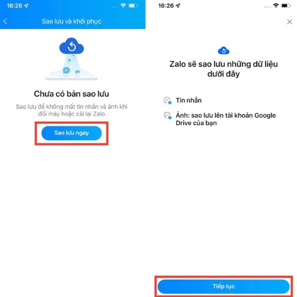 Bước 3: Chọn Sao lưu ngay > Tiếp tục.