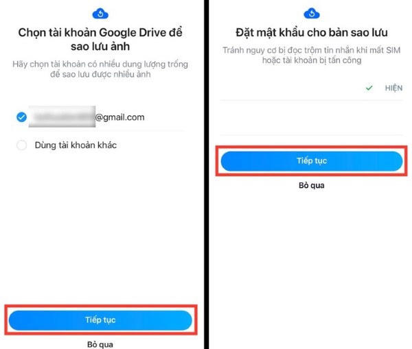 Bước 4: Bạn chọn Tài khoản Drive để sao lưu ảnh > Đặt Mật khẩu cho bản sao lưu này.