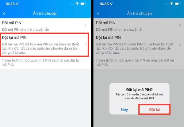 Bước 6: Bạn ấn vào Đặt lại mã PIN > Xác nhận đặt lại mã PIN.