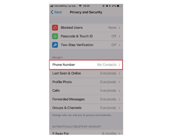 Telegram sử dụng số điện thoại để đăng ký tài khoản. Do đó, số điện thoại cũng sẽ được truy cập để giúp bạn bè trong danh bạ hoặc người khác tìm thấy và kết nối với nhau. Tuy nhiên, trong trường hợp bạn không muốn người lạ tìm thấy mình trên Telegram thì chỉ cần thực hiện ẩn số điện thoại đi là xong. Tính năng này đem tới sự riêng tư và gia tăng độ bảo mật hơn cho người dùng khi sử dụng ứng dụng.
