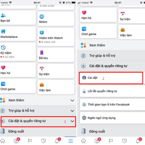 - Truy cập vào phần “Cài đặt & Quyền riêng tư”, sau đó chọn “Cài đặt”.