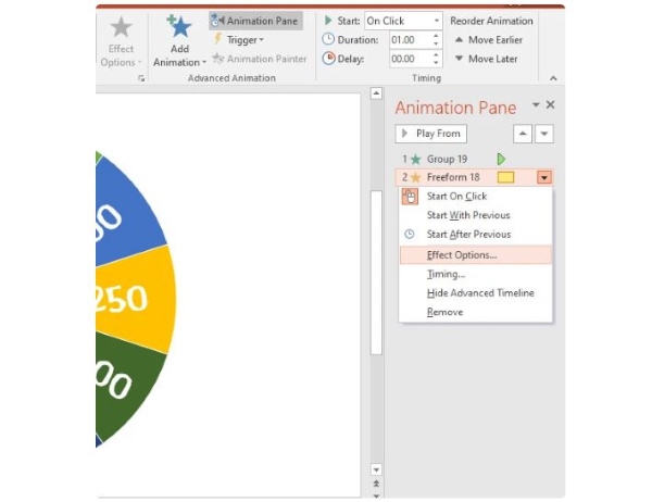 Bước 2: Chọn Animation Pane > chọn Freeform 18 shape > chọn Effect Options.