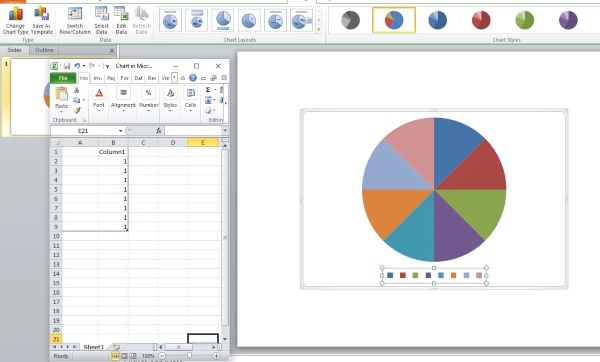 Lưu ý, tại cột B, bạn nên điền tất cả là số 1 để các phần đồng đều nhau, tránh mất cân bằng sẽ khiến hình tròn không cân đối.