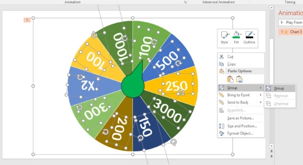 Phần 3: Thêm hiệu ứng cho vòng quay may mắn PowerPoint