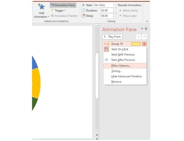 Bước 2: Vào Animation Pane, nhấn chọn mũi tên bên cạnh trong bảng Animation Pane > chọn Effect Options.