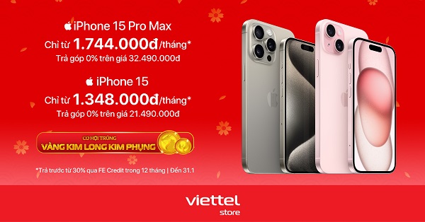 Từ nay đến hết 31/1/2024, lần đầu tiên trả góp iPhone 15 series được áp dụng trên giá trả thẳng với 0% lãi suất. Chỉ có tại Viettel Store. Xem chi tiết ngay!!!