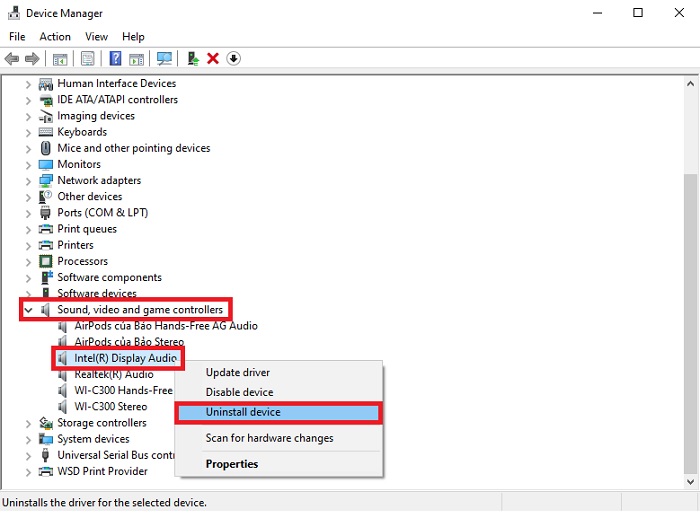 Cách 2: Gỡ và cài lại driver âm thanh