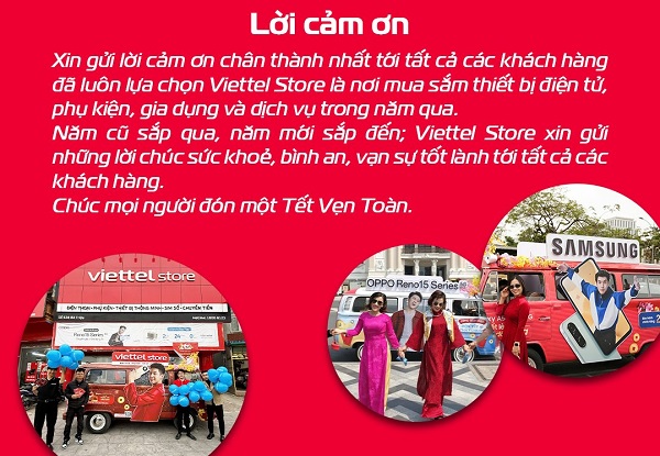 Đặc biệt, để phục vụ tốt nhất nhu cầu mua sắm của Quý khách trong dịp Tết, chúng tôi hỗ trợ mua hàng online xuyên Tết tại website chính thức: viettelstore.vn.