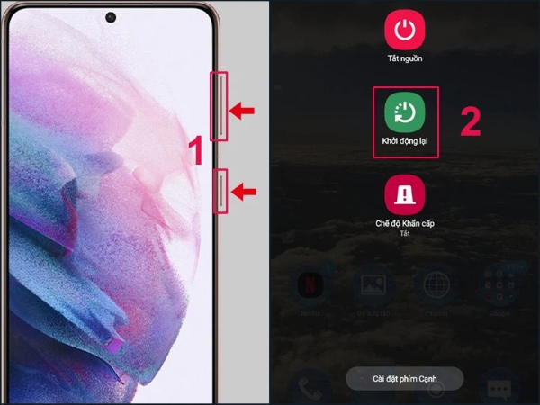 Ví dụ cách khởi động lại điện thoại Samsung thực hiện như sau: