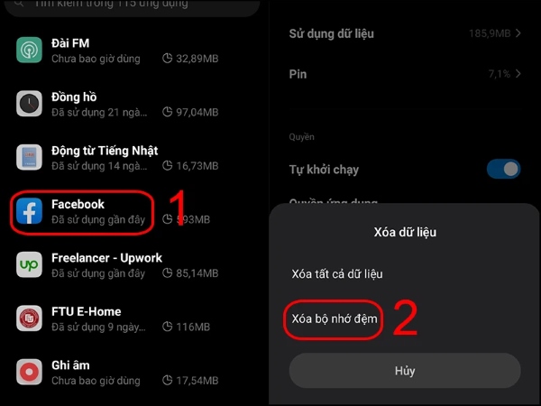 Dọn dẹp bộ nhớ đệm và bộ nhớ data trên ứng dụng Facebook