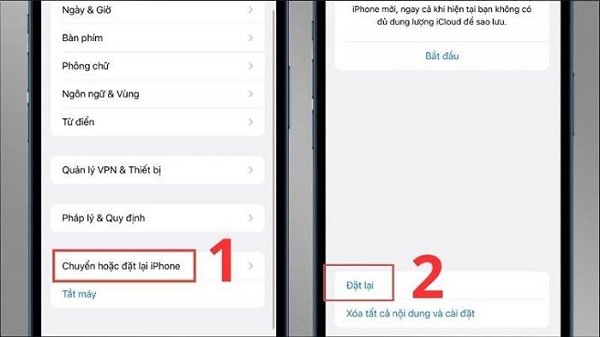 Bước 2: Tiếp đến bạn chọn Chuyển hoặc đặt lại iPhone/ Đặt lại.