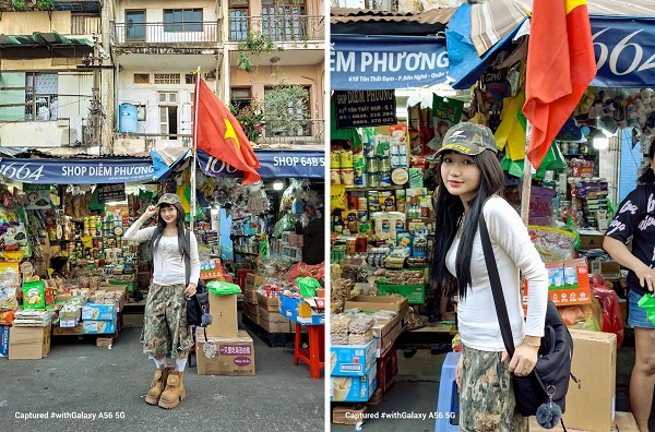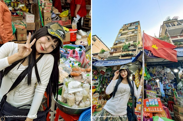 Không gian của chợ, với những mái tôn cũ kỹ, các sạp bán hàng tấp nập, và những món đồ gia dụng xưa cũ, sẽ là nền tảng lý tưởng để bạn lưu lại những bức ảnh đẹp, phản ánh vẻ đẹp hoài cổ của thành phố. Đặc biệt, Galaxy A56 5G với tính năng AI-context aware sẽ giúp bạn bắt trọn từng chi tiết, từ những món hàng, đồ ăn, cho đến những “bức tranh” quầy hàn hay những căn nhà cổ kính theo năm tháng, tạo nên những bức ảnh nghệ thuật không thể quên.