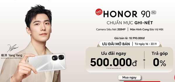 - Giá bán lẻ HONOR 90: 10.990.000 đồng.