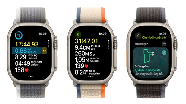 Bên cạnh đó, độ sáng của Apple Watch Ultra 2 đạt tới 3000 nits hiển thị rõ nét dưới ánh nắng mặt trời gay gắt. Đồng hồ được tích hợp tính năng tự động tùy chỉnh độ sáng từ 1 nits đến 3000 nits phù hợp từng môi trường sử dụng và tiết kiệm năng lượng hơn.