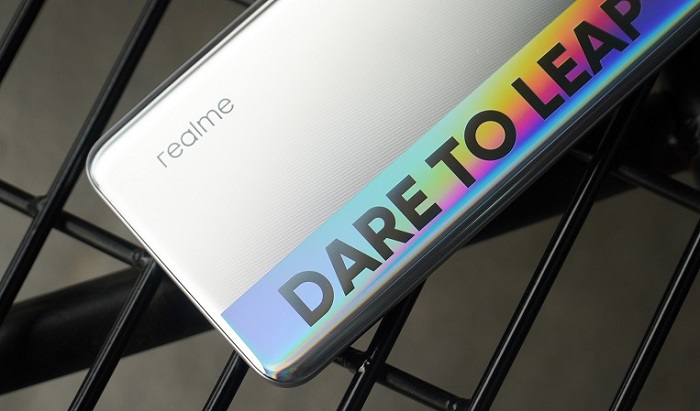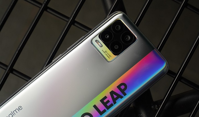 Bên cạnh cụm camera, dòng chữ “DARE TO LEAP” được in cỡ lớn, tráng gương và nổi bật trên nền lưng mờ đã giúp bộ đôi Realme 8 trở nên độc đáo hơn. Thay vì sử dụng các màu sắc cơ bản và hiệu ứng chuyển màu, Realme 8 và Realme 8 Pro đã có màn lột xác với màu ánh bạc cầu vồng đầy cá tính.