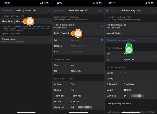 Cách thêm ví điện tử MoMo làm hình thức thanh toán cho tài khoản ID Apple như sau: