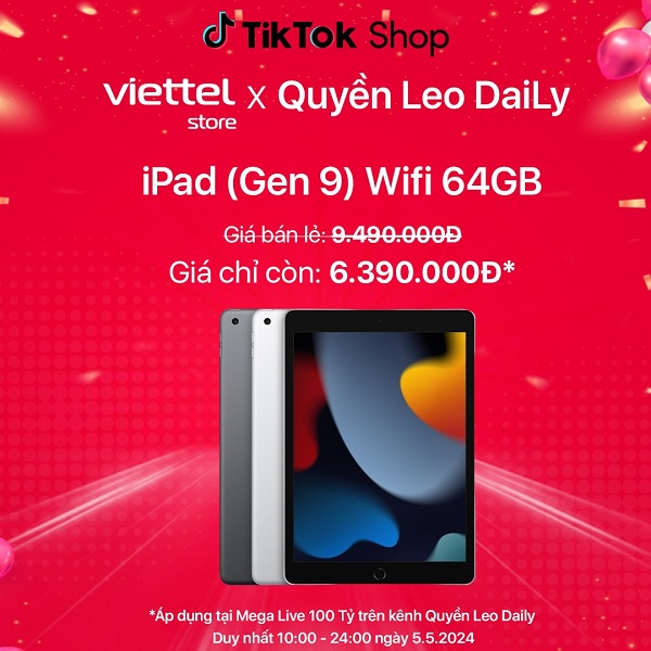 – iPad gen 9 Wifi 64GB giá mua tại Livestream: 6.390.000đ (giá bán lẻ: 9.490.000đ) – Số lượng có hạn.