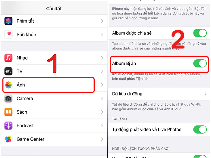 Ẩn Album “Bị ẩn” khỏi thư mục Ảnh