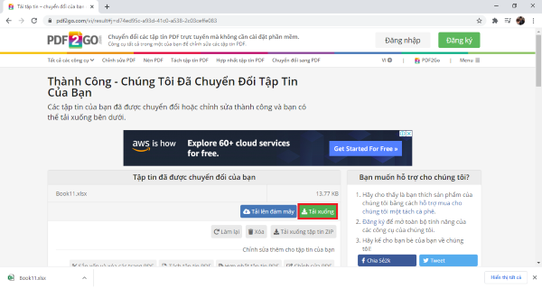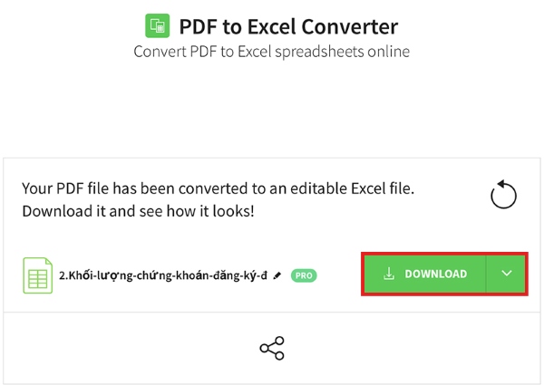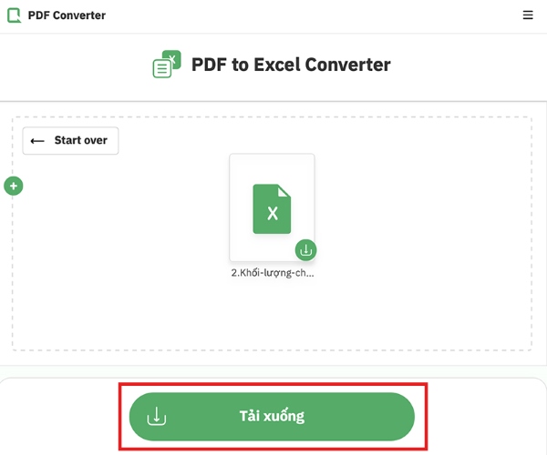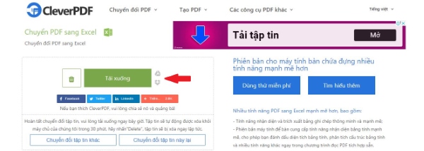 Bước 3: Hãy đợi website chuyển đổi PDF sang Excel thành cống > nhấn vào Tải xuống để tải file về máy tính của bạn.