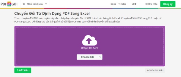 Bước 1: Bạn truy cập trang web PDF2GO (https://www.pdf2go.com/vi/pdf-to-excel).
