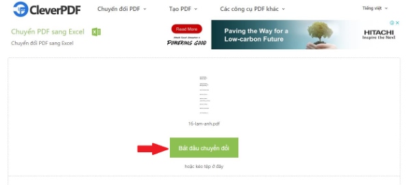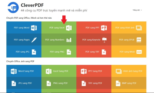 Bước 1: Bạn truy cập vào website CleverPDF (https://www.cleverpdf.com/vi/pdf-to-excel).
