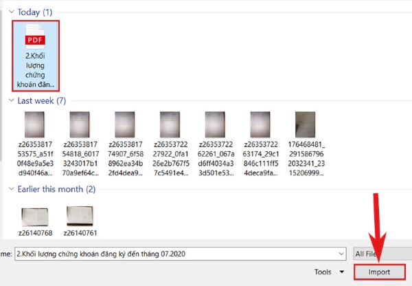 Bước 3: Chọn file PDF cần chuyển đổi sang Excel > nhấn chọn Import.