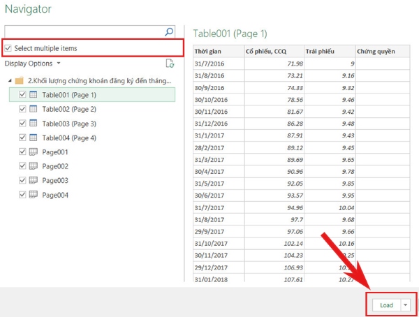 Bước 4: Nhấn vào Select multiple items để chuyển đổi tất cả dữ liệu trong thư mục > nhấn vào Load để hoàn tất.