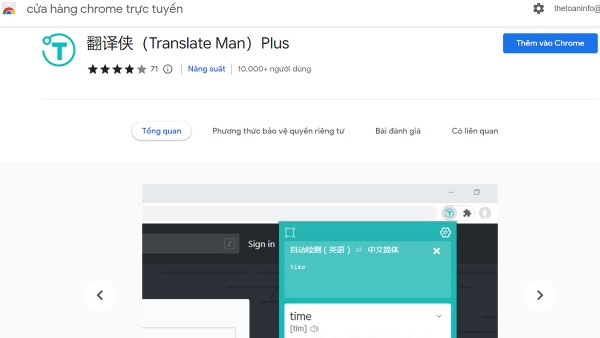Bước 1: Cài đặt tiện ích “Translate Man Plus” trên nền tảng trình duyệt Chrome theo đường dẫn Tại Đây!