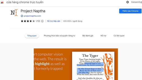 Bước 1: Cài đặt tiện ích “Project Naptha” trên nền tảng trình duyệt Chrome theo đường dẫn Tại Đây!