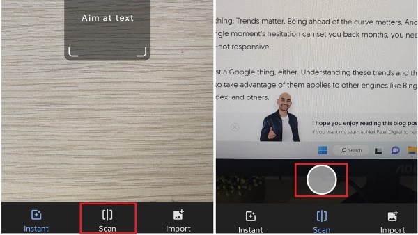 • Quét: Tính năng quét có sự tương tự với tùy chọn Dịch tức thì. Tuy nhiên, nó có cách dùng hơi khác một chút và cho phép chọn vùng dịch. Ngay sau khi quét, bạn có thể thực hiện thao tác bôi đen vùng dịch để nhận kết quả theo mong muốn.