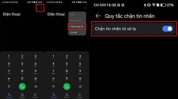 - Bước 3: Bật tùy chọn chặn tin nhắn trong phần cài đặt bảo mật.