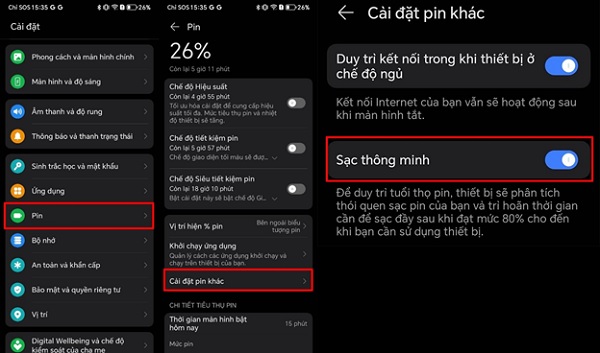 Kích hoạt chế độ sạc thông minh để kéo dài tuổi thọ pin