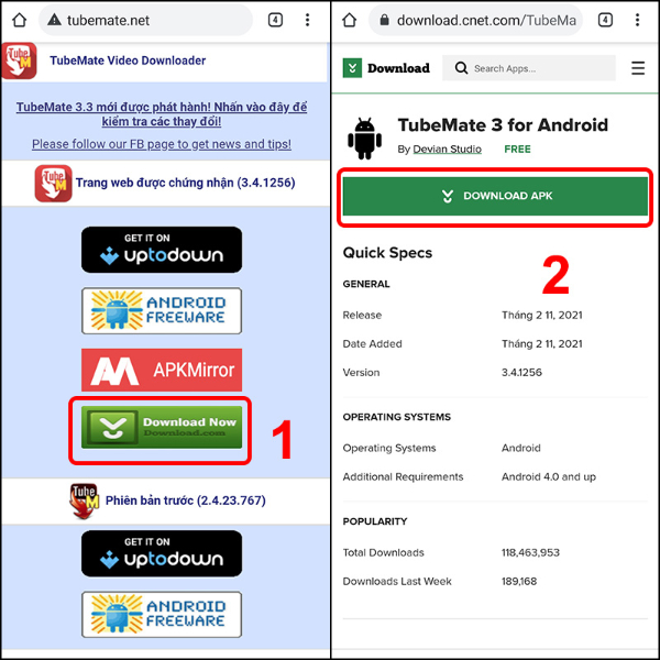 Bước 1: Bạn truy cập vào đường dẫn sau: www.tubemate.net, sau đó nhấp vào Android Freeware để bắt đầu tải những video trên YouTube từ phần mềm TubeMate. Tiếp đến bạn kéo xuống phía dưới và tìm chữ Download, sau đó nhấp vào để tải.
