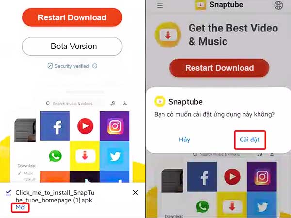 Để tải video YouTube về điện thoại Oppo bạn cần phải tải ứng dụng SnapTube về điện thoại. Với Oppo, bạn cần kích hoạt tính năng cài ứng dụng từ nguồn không xác định để cài đặt app nằm ngoài Google Play Store. Các bước thực hiện tương tự như TubeMate. Sau khi tải SnapTube, bạn thực hiện theo các bước.